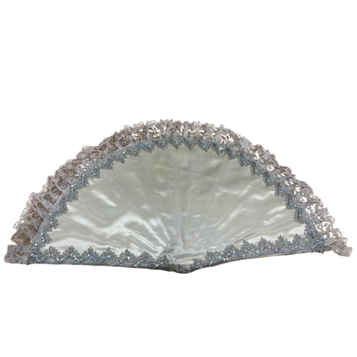 - Bordes adornados con encaje fino y brillante de cristal plateado y detalles en lentejuelas que dan un toque elegante y luminoso.