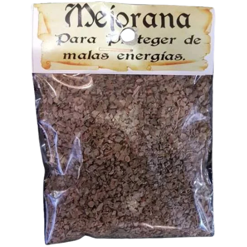 Planta aromática mediterránea de la familia Lamiaceae, pariente cercana del orégano pero mucho más suave y dulce en aroma y sabor. Usada desde el Antiguo Egipto y Grecia como planta sagrada de Afrodita y de los ritos funerarios. Los romanos la llamaban “hierba de la felicidad”. Es una de las plantas más antiguas de la magia amorosa europea y mediterránea.
