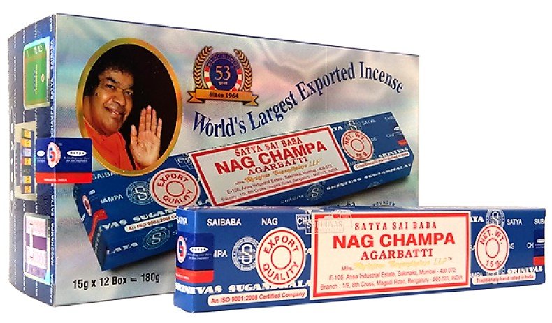 INCIENSO NAG CHAMPA Caja con 12 paquetes de 15 gm .