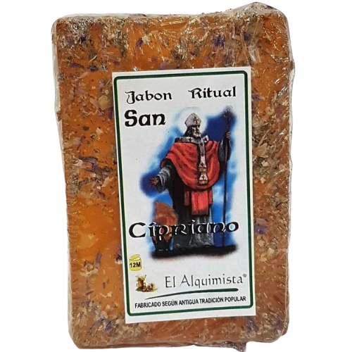 Elaborado artesanalmente bajo la marca El Alquimista, este Jabón Ritual está consagrado a San Cipriano, el santo patrono invocado para romper lazos de magia, brujería y cualquier tipo de influencia negativa o hechizo maligno. Es un baño esencial para limpiar profundamente el cuerpo físico y espiritual, restaurando la paz y la prosperidad en tu vida.