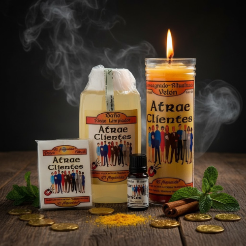 El KIT ATRAE CLIENTES es un ritual de prosperidad, activación de ventas y magnetismo comercial diseñado específicamente para negocios, emprendimientos o profesionales que necesitan un mayor flujo de personas y, consecuentemente, un aumento en sus ingresos y ganancias.