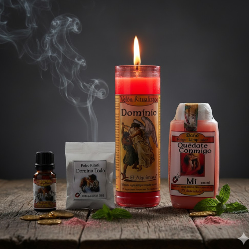 - Activación: Espolvorea el Polvo Dominio sobre la vela. Enciéndela con cerillas de madera. Observa la llama y visualiza a la persona haciendo exactamente lo que tú quieres.