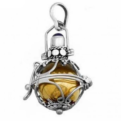 LLAMADOR DE ÁNGELES – JAULA FLORAL PLATEADA | Jaula plateada con bola armónica dorada | 20 mm bola + gancho