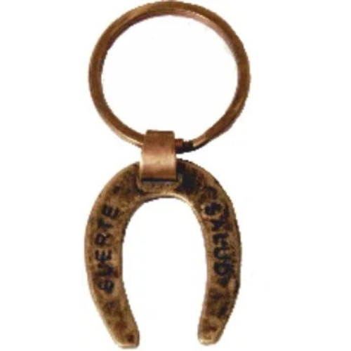 Una herradura maciza con puntas hacia arriba –exactamente como la tradición manda– grabada con “SUERTE” en sus dos brazos. Forjada en bronce envejecido para que la fortuna nunca se escape.