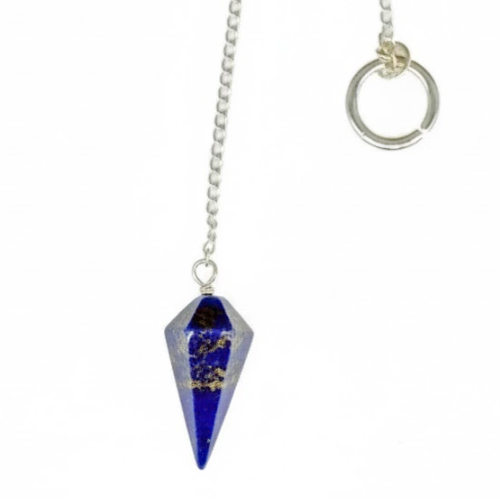 Péndulo Cono Lapislázuli – 30mm Sabiduría, verdad y visión en punta azul real. Cadena plateada + anilla