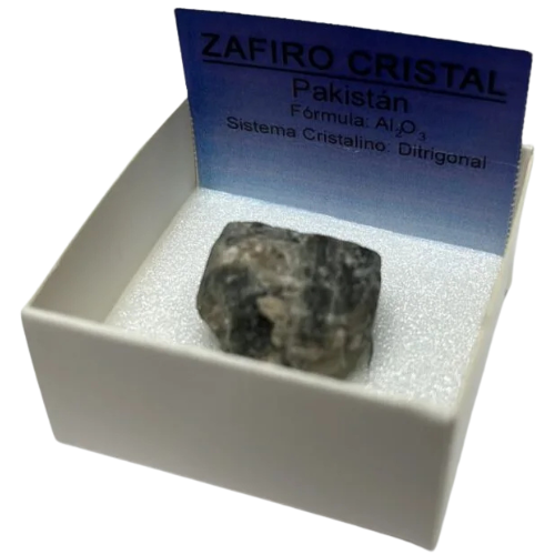 Zafiro cristal natural – Pakistán (Cajita de colección 4×4 cm)