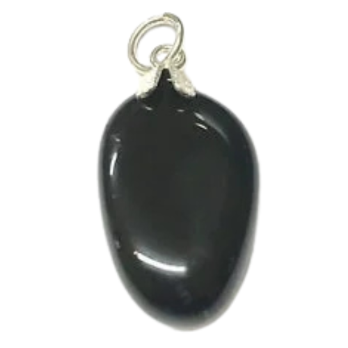 COLGANTE ÓNIX NEGRO NATURAL – Piedra del signo CAPRICORNIO (Ónix negro auténtico – forma irregular pulida o tallada, engarce metálico plateado/dorado)