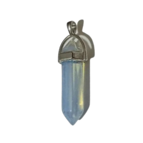 OPALINA PUNTA CON ENGARCE (Opalina / Ópalo sintético lechoso – azul suave que cambia según la luz, con reflejos de arcoíris)