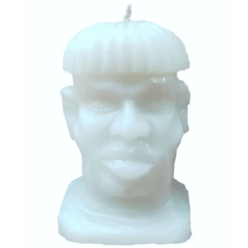 VELÓN CABEZA DE ELEGGUÁ BLANCO – 18-20 cm ¡El camino blanco del niño! Velón figurativo de Elegguá en su manifestación blanca (Eshú Alaguana / Laroyê blanco), el que trabaja paz, salud y apertura limpia.