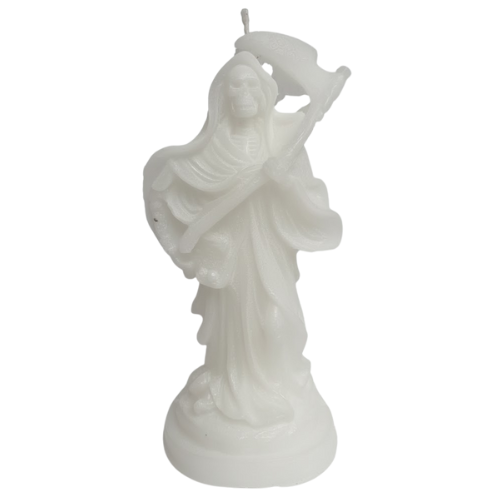 La figura de San La Muerte (o Santa Muerte) en color blanco es una de las representaciones más veneradas. Su uso está enfocado en la pureza y la guía espiritual.