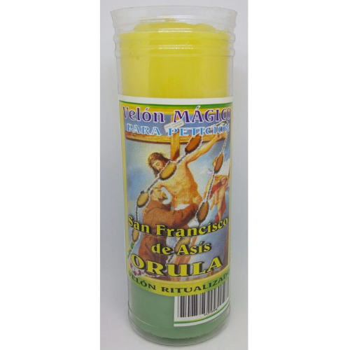 Ideal para rituales de protección, guía espiritual, armonía familiar y toma de decisiones, este velón canaliza la fuerza de Orula y la serenidad de San Francisco de Asís, ayudando a limpiar energías negativas y atraer luz, paz y sabiduría a tu vida.